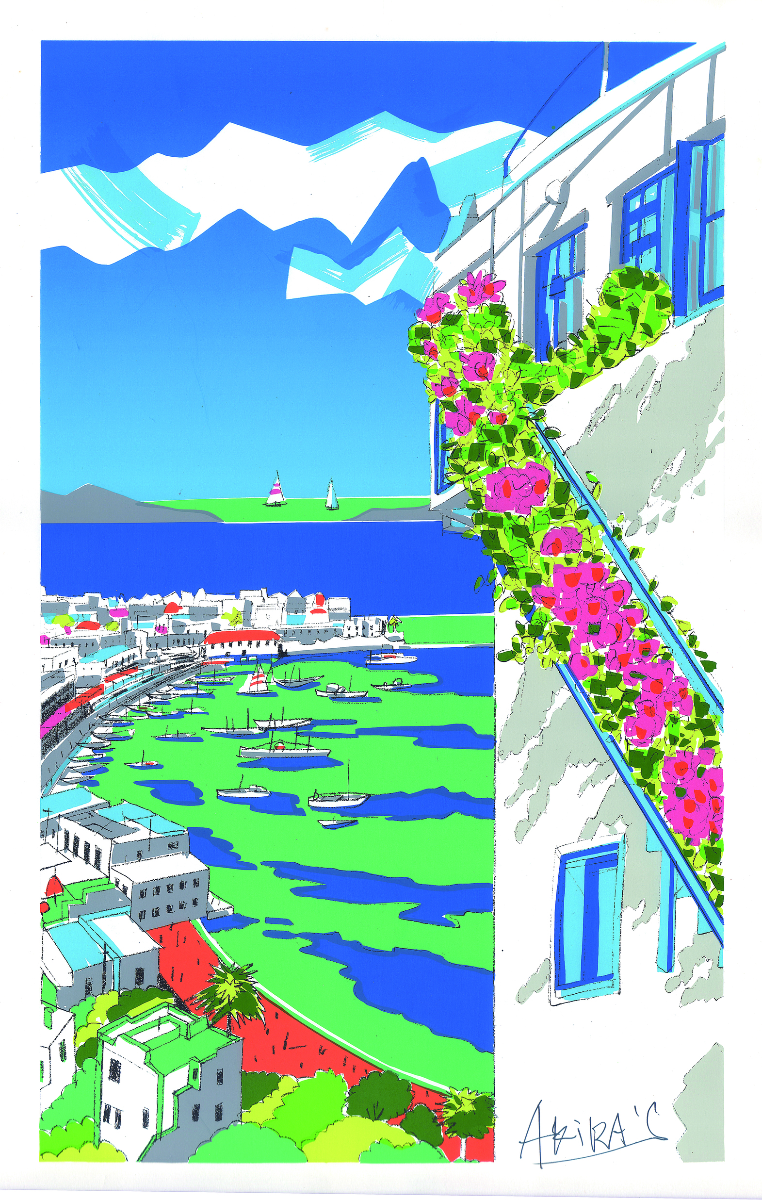 143 シシリアン海(カリブ海) 制作日 2000.4.10 描法 シルク版画 原画通常価格 ¥165,000 原画セール価格 販売済み ポスターフレーム付複製画セット価格 大(A3サイズ) ¥11,000 / 中(A4サイズ) ¥5,500 / 小(B5サイズ) ¥3,300 メキシコ湾の南のカリブ海、ホテルの上階より臨む真っ青なパノラマは日本では出会えない非現実的なドリームランドである。 白い石造りの壁にはバラの花が咲き誇り、立ち並ぶ建物も明るくエキゾチック感満載である。